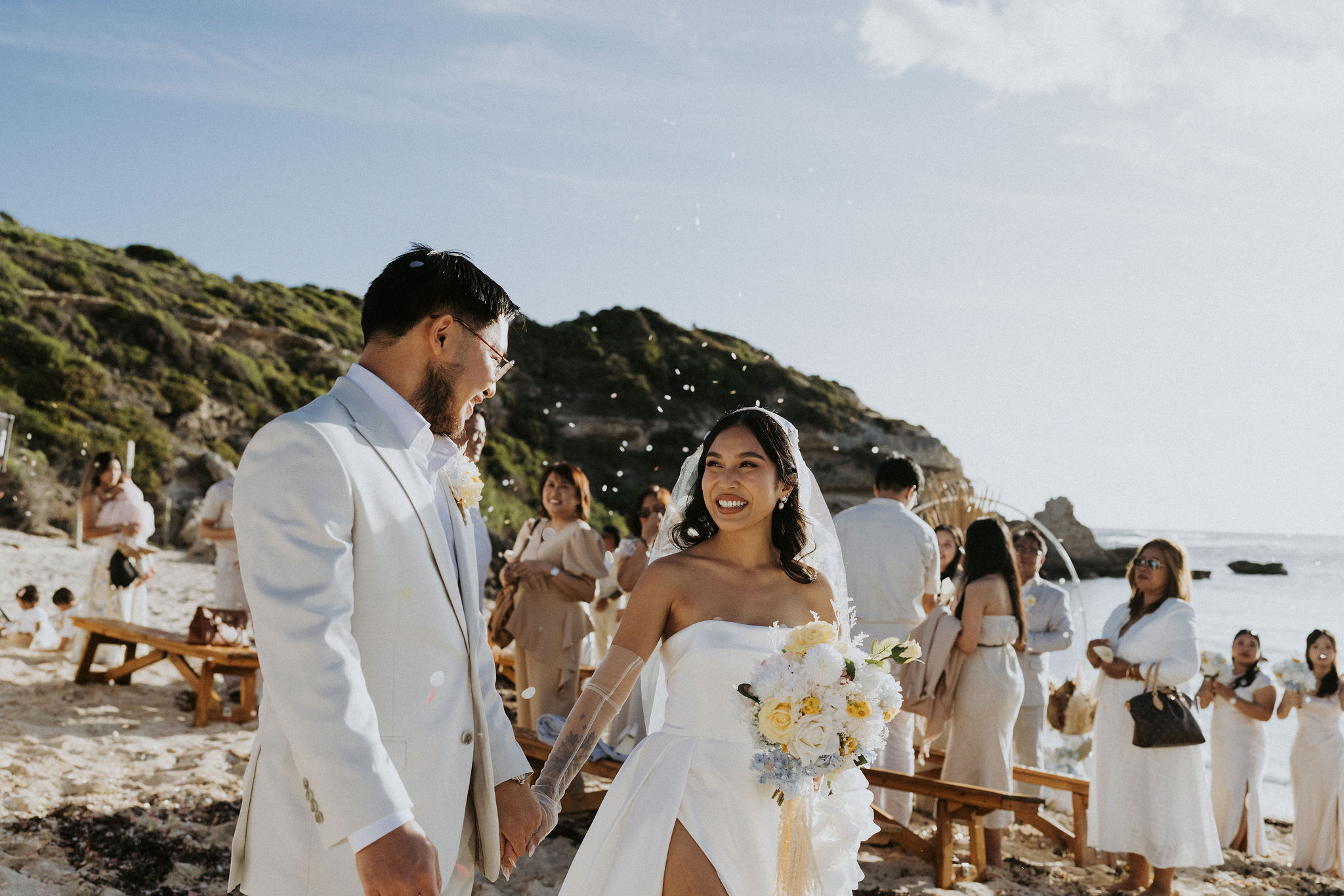 Picture a late-afternoon ceremony on Gnarabup Beach, just outside Margaret River, followed by a cocktail reception on a beautifully styled deck with ocean views. As the stars come out, the party gets going, and you dance the night away - simple, stunning and stress-free!
